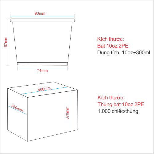 Với dung tích 10oz (~300ml), tô giấy, bát giấy 10oz kem tráng 2 lớp PE dày dặn này thỏa sức đựng kem, chè, thạch, sữa chua,... Hình ảnh những viên kem sặc sỡ, ngon lành, mát lạnh trên cốc chắc chắn sẽ làm bạn yêu từ cái nhìn đầu tiên!