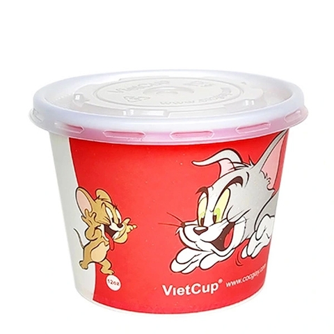 Với dung tích 13oz (~390ml), tô giấy, bát giấy 13oz 1PE này hoàn hảo để đựng cháo dinh dưỡng, chè, soup, canh, bánh trôi tàu,... và nhiều loại món ăn khác. Bát giấy được thiết kế theo nhân vật hoạt hình Tom và Jerry tuổi thơ ngộ nghĩnh, nhí nhảnh, là điểm nhấn giúp sản phẩm thu hút với các "khách hàng nhí".