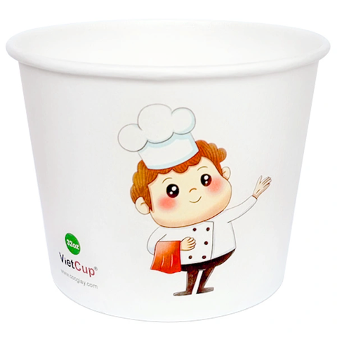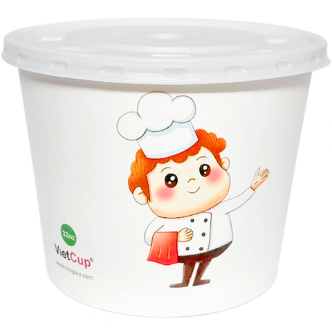 Với dung tích 33oz (~1000ml), tô giấy, bát giấy 33oz 1PE này thỏa sức đựng bún, phở, cháo dinh dưỡng, chè, canh,... và nhiều loại món ăn khác. Hình ảnh chú đầu bếp ngộ nghĩnh mà thanh lịch mang đến một trải nghiệm ăn phong phú tới nhiều tệp khách hàng.