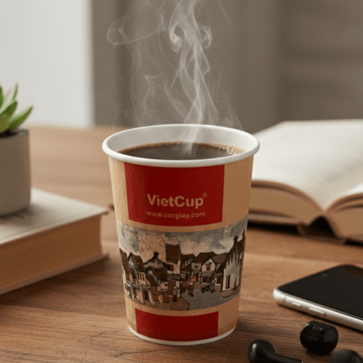 Với dung tích 8oz (~240ml), cốc giấy, ly giấy 8oz này có thể thoải mái đựng nước, siro, và các loại thức uống nóng như trà, cà phê… Đây là một lựa chọn tuyệt vời trong văn phòng, các sự kiện và hội nghị, phục vụ FnB, và cả trong đời sống cá nhân hằng ngày. Lấy cảm hứng từ dòng tranh Phố Phái, chiếc cốc khơi gợi suy tư và hoài niệm về một Hà Nội xưa dung dị, thanh lịch.