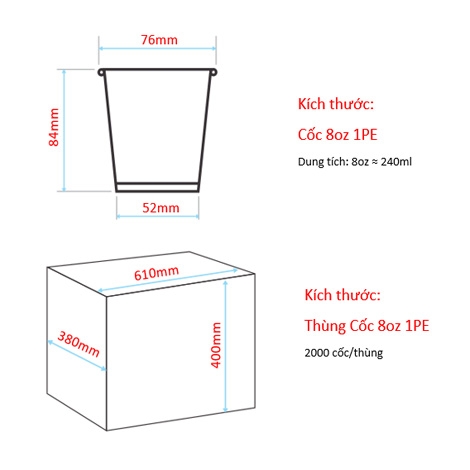 Với dung tích 8oz (~240ml), cốc giấy, ly giấy 8oz này có thể thoải mái đựng nước, siro, và các loại thức uống nóng như trà, cà phê… Đây là một lựa chọn tuyệt vời trong văn phòng, các sự kiện và hội nghị, phục vụ FnB, và cả trong đời sống cá nhân hằng ngày. Chiếc cốc vàng với motif cà phê sẽ mang đến cho bạn một sự ấm áp, thanh tịnh trong lòng như ánh nắng vàng mỗi sớm mai.