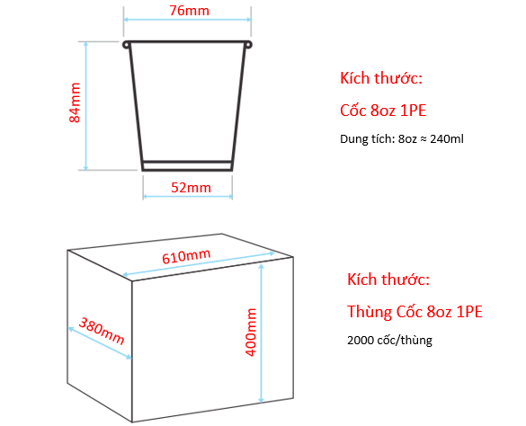Với dung tích 8oz (~240ml), cốc giấy, ly giấy 8oz này có thể thoải mái đựng nước, siro, và các loại thức uống nóng như trà, cà phê… Đây là một lựa chọn tuyệt vời trong văn phòng, các sự kiện và hội nghị, phục vụ FnB, và cả trong đời sống cá nhân hằng ngày. Chiếc cốc cân bằng giữa hình ảnh cafe dung dị và thông tin về cà phê Việt Nam được thiết kế hài hòa, thanh lịch, mang đến trải nghiệp đa dạng cho người dùng.