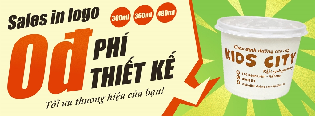 Chương trình áp dụng cho bát giấy với các kích thước 300ml, 360ml, 480ml. Bạn có thể lựa chọn kích thước phù hợp với nhu cầu của cửa hàng mình.